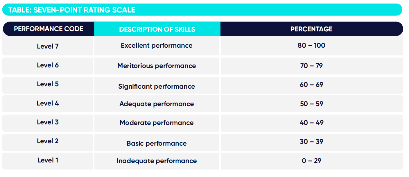 A learner’s performance can be divided into seven levels, as set out below. These levels apply to all grades. If you are hesitant to decide between two levels, rather choose the lower level. This will give you a more accurate representation of your child's performance and motivate the learner to really want to achieve higher levels: