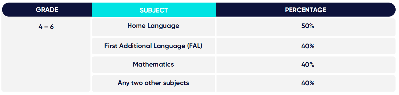 Please see below the pass requirements for Foundation Phase learners. Note: Life Skills is also part of the subjects for Grade R to 3 learners; however, there are no pass requirements for this subject.